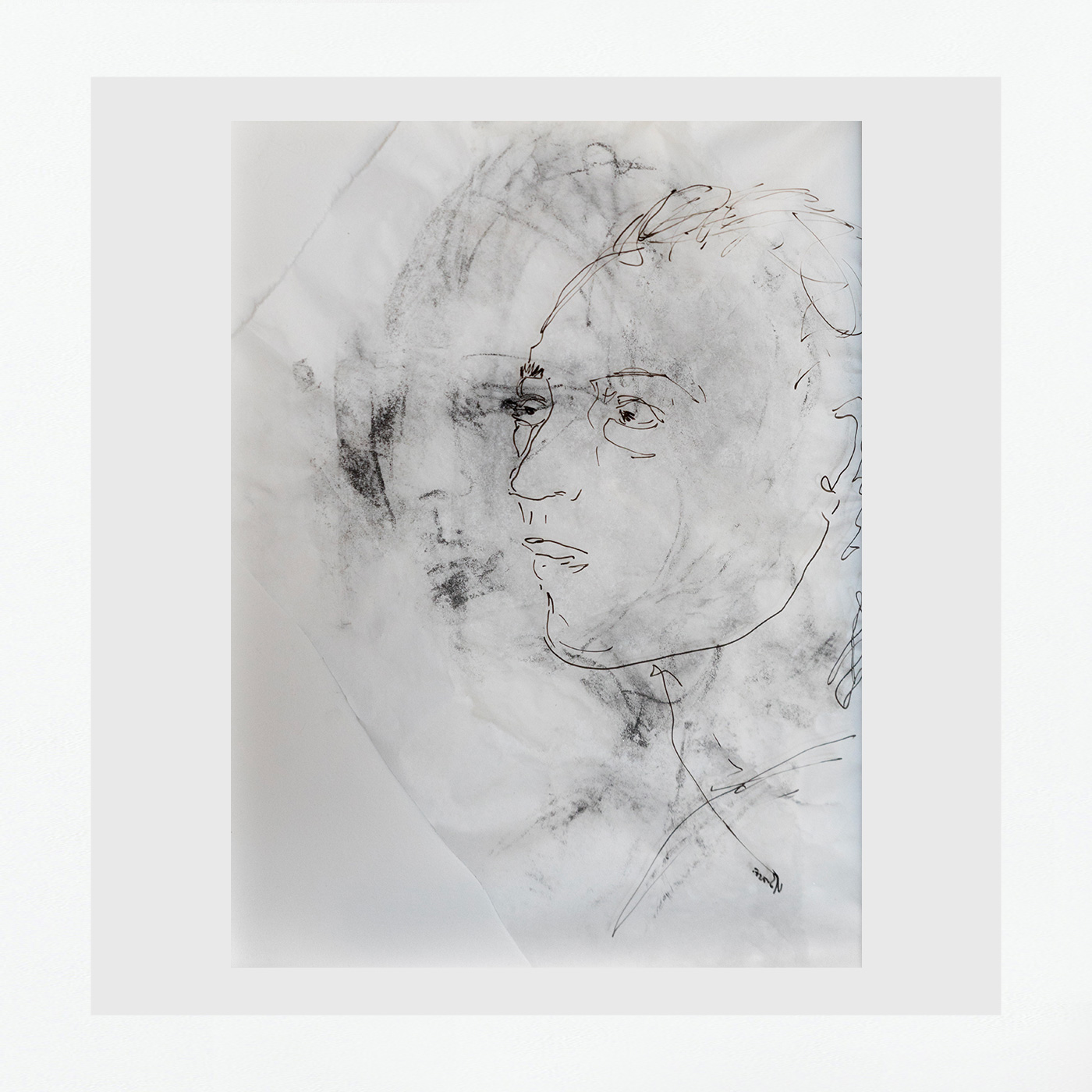 Ink, pencil on paper and glass, 40 x 30 x 2 cm.